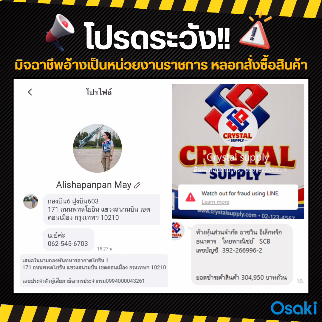 ขอให้ทุกท่านระมัดระวังเพื่อหลีกเลี่ยงความเสียหาย 🙏